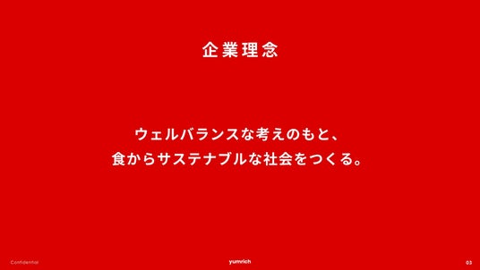 株式会社YUMRICHは、「ウェルバランスな考えのもと、食からサステナブルな社会をつくる」というミッションを掲げるフードテック企業です。国産のお米や大麦などの穀物を使用し、自社開発の植物性ミルクでプラントベースアイスを製造・販売しています。健康や環境への配慮だけでなく、「おいしさ」と「楽しさ」を重視しています。自社ブランド「yumrich(ヤムリッチ)」の運営、業務用アイスのOEM提供、ケータリングサービスも展開しています。ビジョンは「誰もが平等に"食"を楽しめる世界を実現する」ことです。