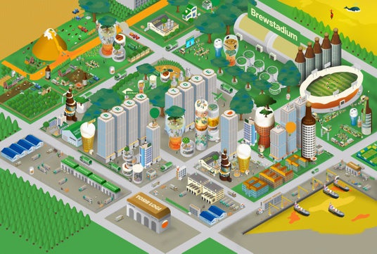 ビールをモチーフにした様々なシーンで構成されたホップ型の世界。