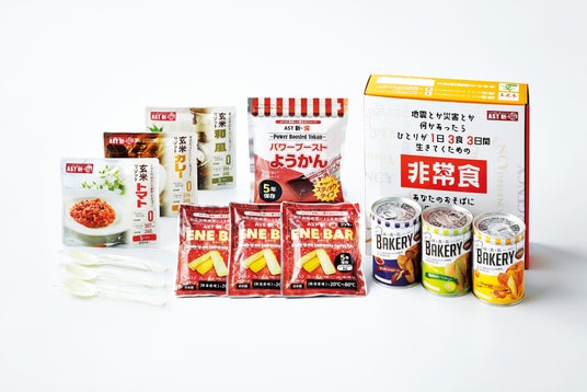 1人分の1日3食3日分の非常食、 3種の玄米リゾット・缶入りソフトパン・クッキー・ようかんが1箱に詰まったいざという時に備えて置きたいセット。全て調理不要・常温で5年の保存が可能。