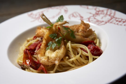 フグのフリットの繊細な旨味とセミドライトマトの甘酸っぱさによる絶妙なバランスを楽しめる贅沢なパスタです。