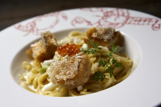 甘鯛の鱗揚げと白菜の柚子クリームパスタ