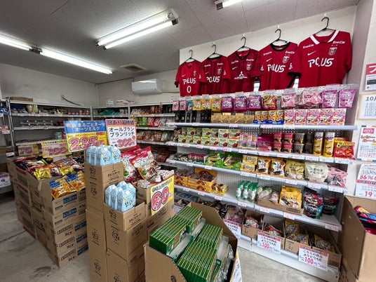 店内に飾ってある浦和レッズのユニフォームは店主の趣味によるもの。店名の由来にもなっています。