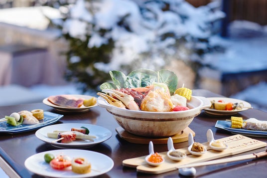 こたつで暖をとりながら、体の内側からも温まれるように、北海道ならではのおでんを提供します。カニやエビなどの豪華な海鮮と、フキやタケノコなどの山菜をふんだんに使用したバリエーション豊かな「スペシャルおでん鍋」を用意。付け合わせにはいくらやカニミソ、山わさび、ゆずみそを提供します。たくさんの具材は付け合わせで味の変化を楽しみながら、最後まで味わい尽くすことができます。