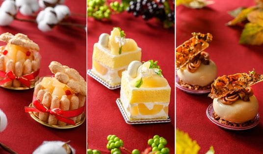 さわやかな香り、独特な風味と食感が魅力の洋梨を贅沢に楽しめるスイーツに、和をモチーフにした栗とほうじ茶のスイーツをご用意します。
