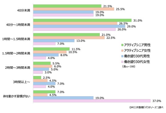 DM三井製糖では、このたび東武スポーツとの協業に際し、60~80代シニア世代の「運動習慣」に関するアンケート調査を実施。「アクティブシニア」の方が「働き盛り30代」よりも体を動かす習慣(時間・頻度・費用)や意識、満足度が高いという、興味深い結果が出ております。