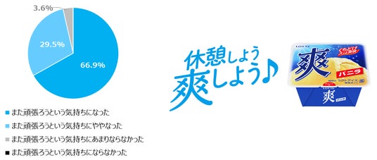 「休憩を取るきっかけになり、とてもよかった。」「気分転換になり、食べた後の集中力が上がった。」 「午後も頑張ろうと気持ちの切替になった。」「アイスを食べてリフレッシュすると作業効率が上がりそうだと思った。」