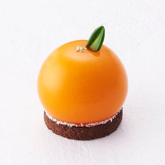 冬に旬を迎える温州みかんをショコラとあわせて。温州みかんのムースで、温州みかんのコンフィチュールとショコラムースを包み込みました。