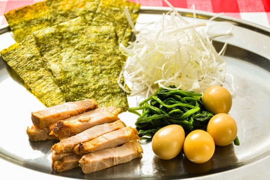 家系の王道トッピング(※写真は具材増量のMAXメニュー)