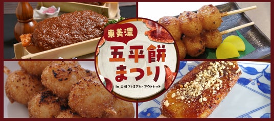 形や味によって地域の特色を映したご当地グルメ「五平餅」が一堂に会するこの機会に、秋のアウトレットショッピングをお楽しみいただきながら、お気に入りの五平餅をぜひ見つけてみてください。