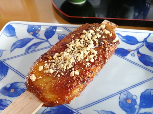 中部地方山間部に古くから伝わる「五平餅」は、お米を潰して串に巻き付け、たれを付けて焼いたシンプルなものでありながら、地域や店舗によって形やたれ、串の形状などに様々な違いがあるのが魅力の郷土料理です。岐阜県南東部に位置する東美濃地域では、サービスエリアや道の駅などをはじめ約120店舗で販売されており、岐阜県民のソウルフードとして古くから愛されています。香ばしく焼きあげたお米と甘辛のたれの相性は抜群で、地域色豊かな味の違いを楽しむのも五平餅の面白さのひとつです。