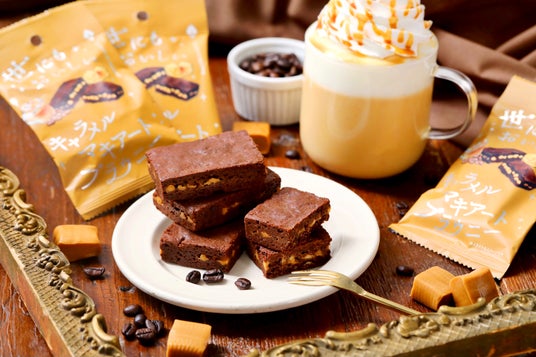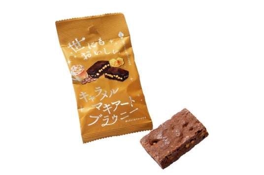 さらに、同日に発売する『世にもおいしいキャラメルマキアートブラウニー』は、寒い冬の季節に飲みたくなる“キャラメルマキアート”をブラウニーで表現。コーヒーとビターキャラメルの風味を加えたほろ苦いブラウニー生地に、キャラメルチョコチップをサンドして焼き上げました。