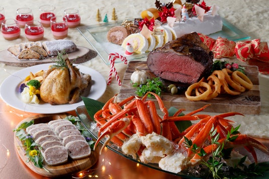 COOKAからのクリスマスプレゼント!シーフードブッフェのメニューに加え、「ローストチキン」や「本ずわい蟹のボイル」(ディナー限定)、デザートには「シュトーレン」や「ブッシュドノエル」(ディナー限定)など幸せが詰まったご馳走が登場。素敵なパートナーや仲間とテーブルを囲んで、とびっきりの美味しさをご堪能いただけます。