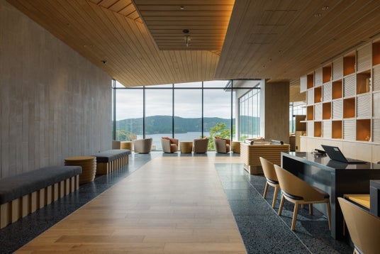 お客様をお迎えするアライバルラウンジおよびエントランスホールでは、箱根細工をモチーフとした木々の折り重なるようなデザインを施し、箱根ならではの時間を演出いたします。そのほかの共用施設として、温泉大浴場、屋内外プール、3種のサウナ(ドライサウナ、スチームサウナ、ハーブサウナ)、ファイヤーピットテラス等の多様な共用施設を備えており、大切なご家族やご友人の方などとの特別な時間と団欒のひと時をご提供いたします。