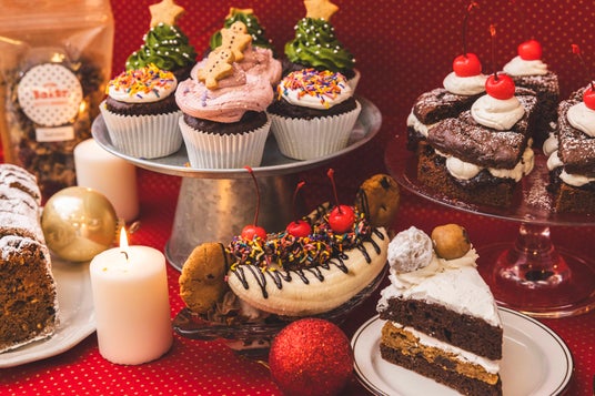 食いしん坊なサンタが作ったチョコチップクッキー・スノーボール・生クッキーの様々な味と食感を一度で楽しめる夢のようなスペシャルケーキ。