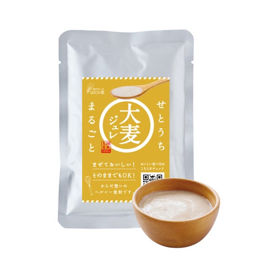 一般社団法人瀬戸内麦推進協議会(所在地:香川県坂出市林田町4285番地152吉原食糧株式会社内、会長:吉原良一)は10月23日(水)、瀬戸内産の大麦「はだか麦」と水だけで作った新商品「せとうちまるごと大麦ジュレ」を発売します。これまでアレンジの限られていた大麦を全国で初めて(※製造特許取得済)ジュレにすることで、主菜からスイーツまで幅広いメニューに合わせることができ、栄養価の高い大麦を手軽に取り入れられます。