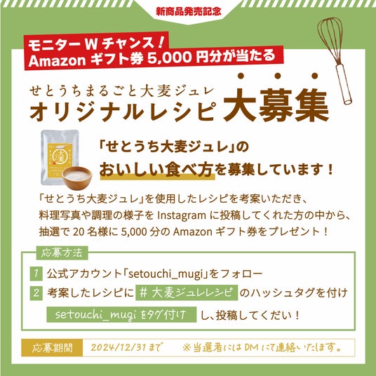 ◯キャンペーン名:モニターWチャンス!せとうちまるごと大麦ジュレレシピ募集