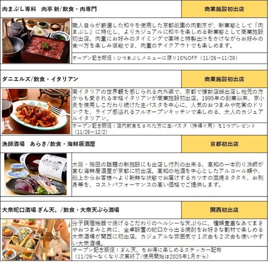 JR西日本京都SC開発株式会社(代表取締役社長 森本卓壽)が運営する「京都ポルタ」では、2024年11月、飲食エリア「ポルタダイニング」を拡大し、関西初1店、京都初1店を含む計4店舗を新たにオープンいたします。