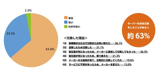 5.利用者の約6割が、サーバー本体の交換をしたことがある(うち5割弱が衛生面が気になったと回答)