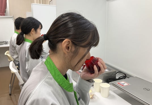 当社鑑定士のオリーブオイル官能評価風景(横浜の当社研究開発施設にて撮影)