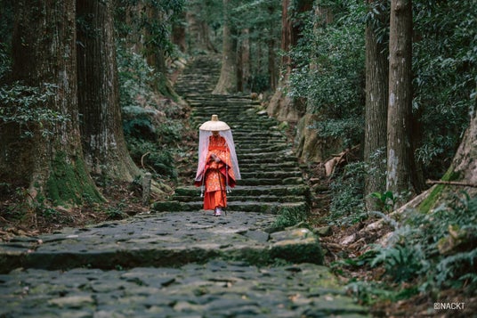 田辺から山中に分け入り熊野本宮に向かう「中辺路(なかへち)」。平安時代から鎌倉時代に皇族や貴族など最も多くの参詣者が歩いたとされています。その平安衣装を着て大門坂を歩きます(衣装着用歩行約1km)。霊場をめぐり、パワースポットの那智の滝でエネルギーをチャージします。