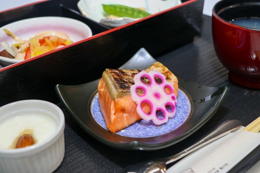 宿泊体験の一環として、ホテル一景閣の朝食も堪能。炭火で焼きたて、パリッと焼きあがった銀鮭と、新鮮な海の幸が食欲をそそります。動画内では朝食の内容や一景閣のホスピタリティに触れながら、ホテル一景閣の魅力を広く発信しています。