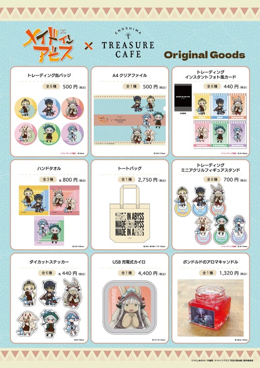 会場にて、ENOSHIMA TREASURE CAFE限定『メイドインアビス』コラボグッズを販売いたします。