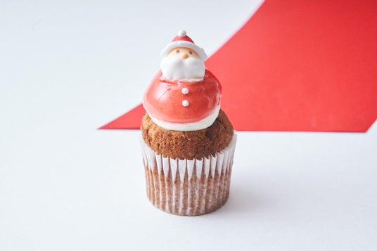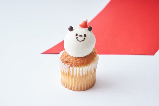 「サンタアップルティー」アップルティーの茶葉入りカップケーキのうえに、ホワイトチョコクリームのまあるいサンタをのせて。