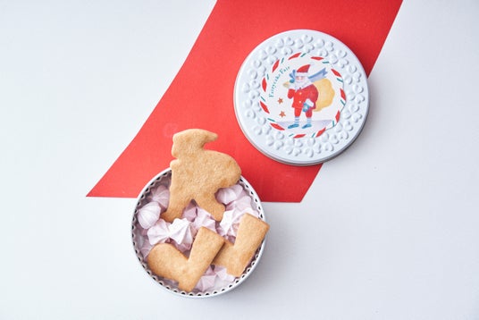 パッケージに描かれたイラストレーター・前田ひさえさんによるユーモラスなサンタクロースがお出迎え。子どもも大人も思わず笑顔がこぼれる、見ても食べてもたのしいクリスマスのお菓子です。