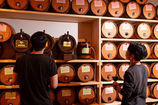世界各国のワインを樽詰めしセルフで飲み放題にする事により安価にコスパよく!!!