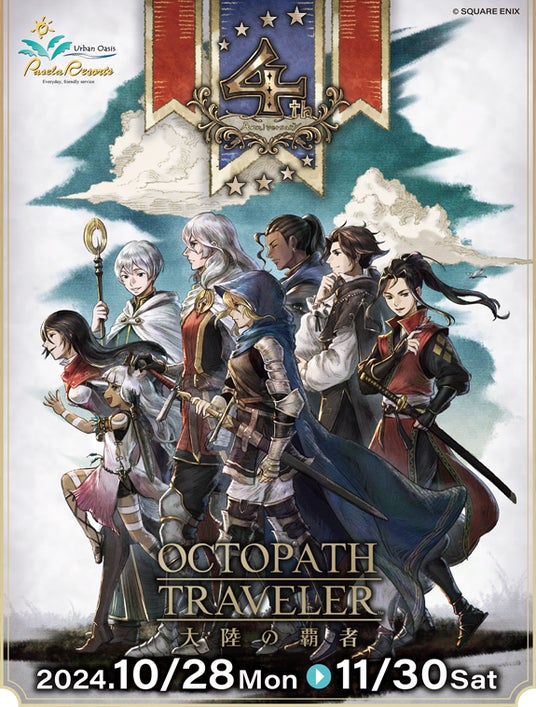 『オクトパストラベラー大陸の覇者』の4周年を記念いたしまして、2024年10月28日(月)から11月30日(土)までの期間、カラオケパセラAKIBAマルチエンターテインメント店、横浜ハマボールイアス店、なんば道頓堀店の3店舗でコラボレーションを開催いたします!
