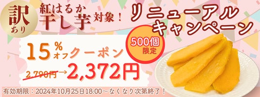 【10/25(土)18:00~限定『NEW訳あり紅はるか干し芋 1kg』に使える15%OFFクーポン】