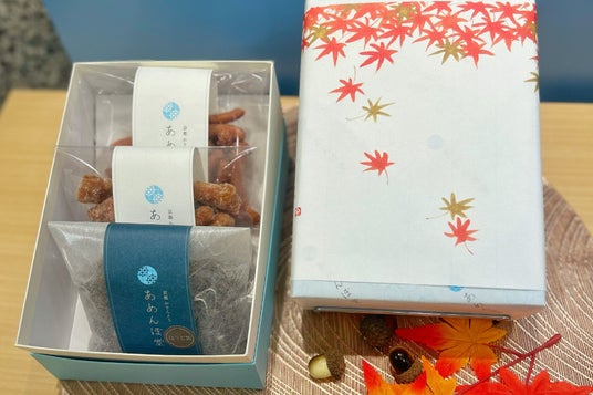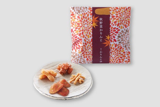 秋野菜のうまみが詰まった季節のかりんとう詰め合わせ。紅葉シーズン限定パッケージでご用意しました。