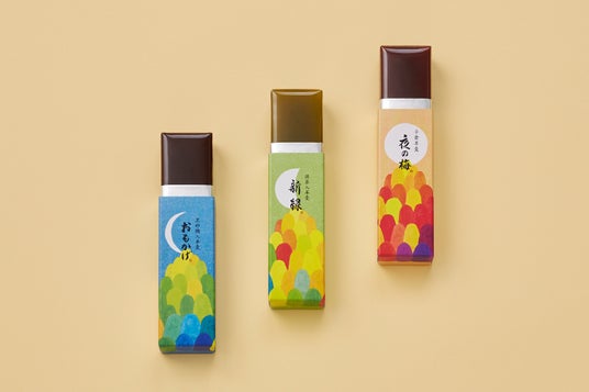 月の満ち欠けと色づいていく山々を描いた秋らしいパッケージの小形羊羹です。贈りものにおすすめ。