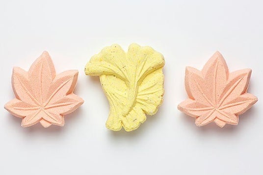 季節ごとに木型と味を変えて、かわいらしい袋に入れた和三盆糖を使ったおひがし(お干菓子)です。秋の風物詩「紅葉・銀杏」を表しています。