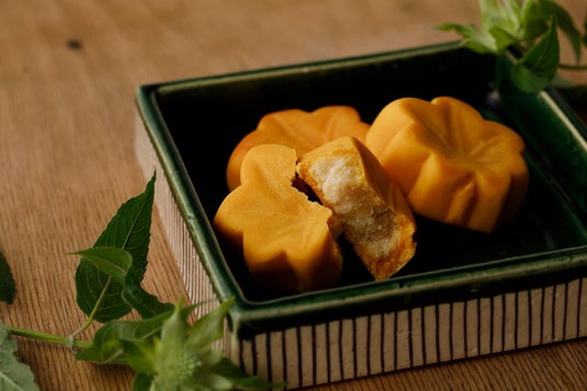 オレンジに色付けしたどら焼き生地で、つぶあんを包んだ秋限定のふくさです。
