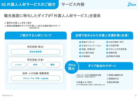 ■ダイブの特定技能人材サービス「宿泊業界のための外国人求人ナビfor特定技能」の強み