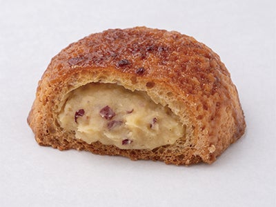 焼き芋ブリュレシューのシュー生地は“サクサク食感”に焼きあがったクッキーシュー生地にさらにザラメを纏わせ店内のオーブンで丁寧に二度焼き(表面をキャラメリゼ)することで“カリカリとした食感”のシュー生地に仕上げております。また、この専用生地の中にはなると金時を使用したお芋と自家製カスタードを混ぜ合わせた“濃厚なお芋クリーム”を詰めることで、まるで焼き芋ブリュレを食べているかのようなシュークリームが完成しました。お芋のほくほく感とカリカリとした食感で口の中に広がる秋の味覚をどうぞご堪能くださいませ。