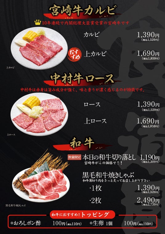 また、池上店オープンを記念して、池上店限定の【和牛ロースセット《1人前 税込3,608円》】も販売予定。