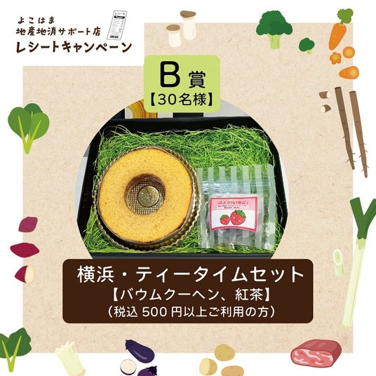 【B賞】横浜・ティータイムセット×30名様(店舗で税込500円以上ご利用いただいた方)
