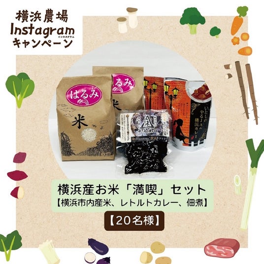 キャンペーン期間中に、横浜農場公式アカウント(@yokohama_farm_official)をフォローし、指定の投稿に「いいね!」をしてくださった方の中から、抽選で市内産農産物の詰め合わせをプレゼントします。