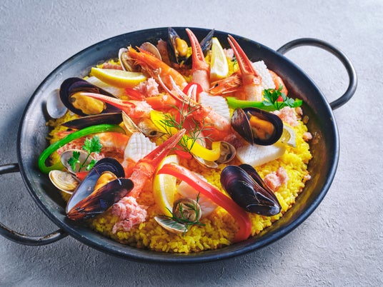 カニパエリア /カニと鮭の朴葉蒸し 西京味噌ソース / カニ爪フリット チリソース / カニコロッケ / カニニピザ / カニ焼売 / 鶏のから揚げ / ビーフシチュー など