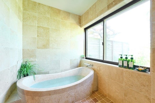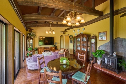 ヴィラには、アンティーク家具が配された広々としたリビングダイニングがあり、特注の天然大理石バスタブを設置したバスルームも完備しています。この贅沢な空間は、宿泊者に五感を癒すリラクゼーション体験を提供します。冬には薪ストーブで温まりながら、自然の美しさと静寂を満喫できる贅沢なひとときが待っています。