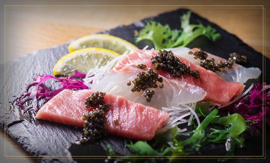 新鮮なマグロと真鯛が織りなす極上のカルパッチョに、海の宝石キャビアを贅沢に添えて。口の中で広がる至高の味わいをご堪能ください。