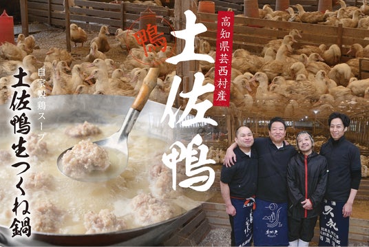 素材の旨みをストレートに感じる濃厚な白湯スープで味わう”土佐鴨生つくね鍋をはじめ、トロ茄子出汁ジュレを添えた”土佐鴨ロースト”や、鴨肉と雲丹の絶妙なハーモニーが味わえる”藁ウ鴨”といった土佐鴨料理もお楽しみ頂けます。