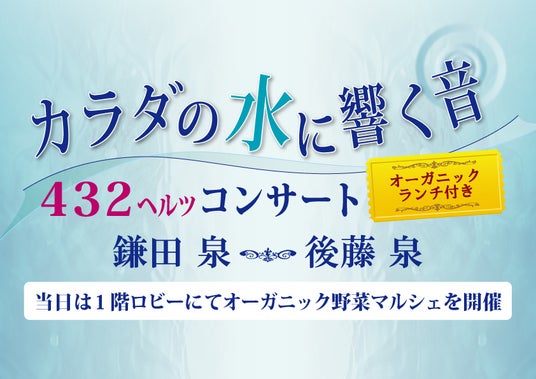 楽器を432Hz に調律し、 奏でる癒しのコンサートです。音がゆるやかに優しく広がり、暖かくあなたの心に届きますように。オーガニックランチと共にお楽しみください。
