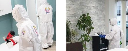 完全防護着での消毒除菌作業はスタッフへの負担がとても重いものですが、シッカリと消毒除菌を行ってきた実績がございます。
