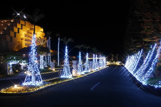 美しいイルミネーションがリゾート全体を照らし出し、幻想的な夜を演出します。