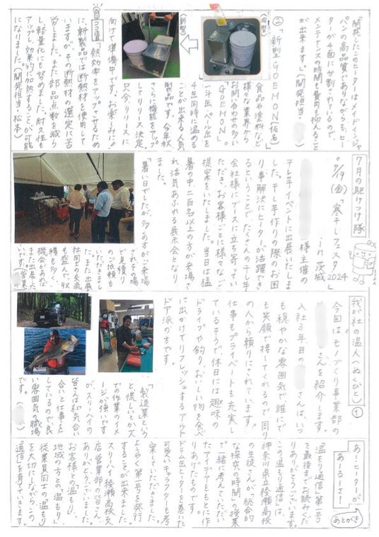 2.スリーハイのスタッフ紹介として「我が社の温人(ぬくびと)」コーナーを掲載。創刊号では製造部門の社員を取り上げました。