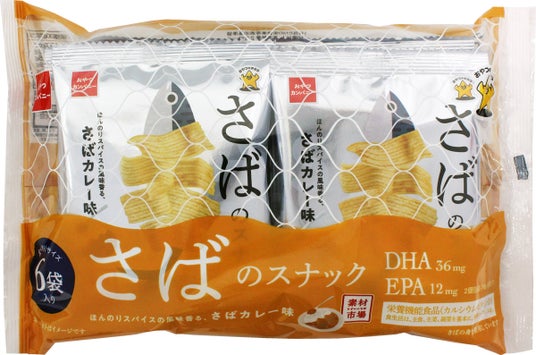 DHA、EPAの栄養素を手軽に摂れる栄養機能食品(カルシウム、ビタミンD)の『素材市場 さばのスナック』が、家族みんなで楽しめる「さばカレー味」になりました。生地にたっぷりとさばを練り込み、さばの風味を活かしながら、ほんのりスパイスの風味が香る、さばカレー味に仕上げています。