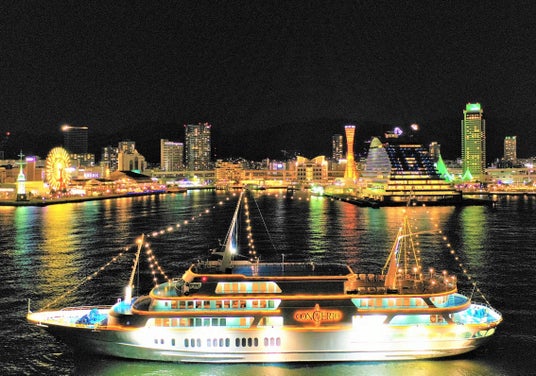 神戸の夜景と言えば六甲山からの夜景が有名ですが、実は海から見る夜景はとてもカラフルで知る人ぞ知る絶景。この美しさを例えるなら、それは「海の宝石箱」。